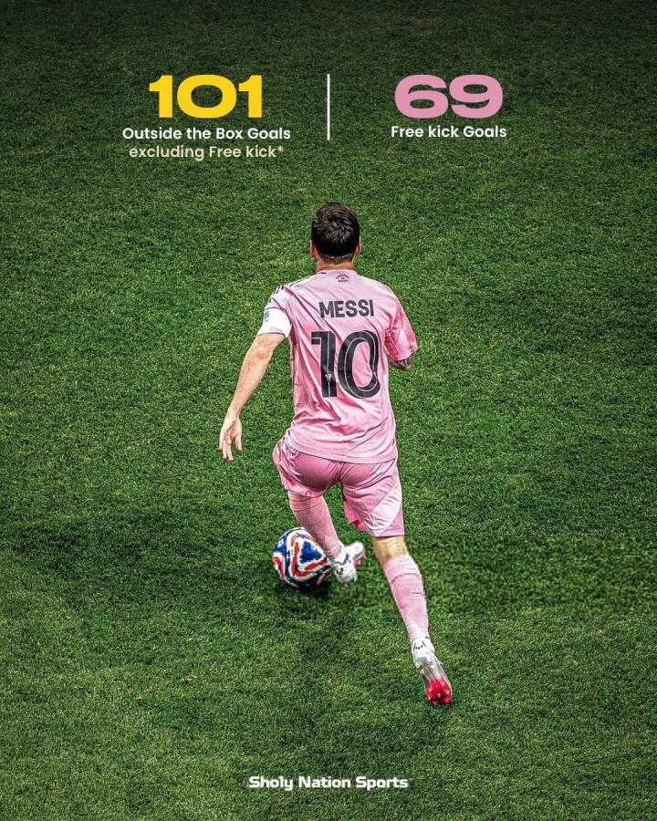 远射也无解!38岁梅西禁区外畅通战进101球,此外还有69个落拓球