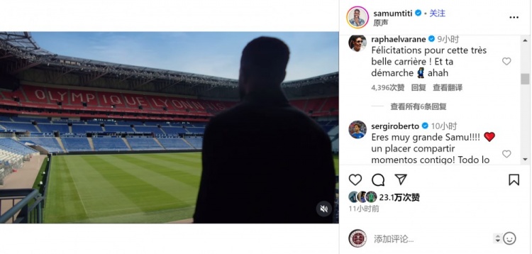 乌姆蒂蒂社媒告示退役,瓦拉内、罗贝托等东谈主留言祝贺❤️
