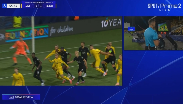 比赛第54分钟,约翰逊本坦库尔闪电扳平,VAR介入判罚犯规在先,进球无效。博德明慧仍然1-0高出热刺!