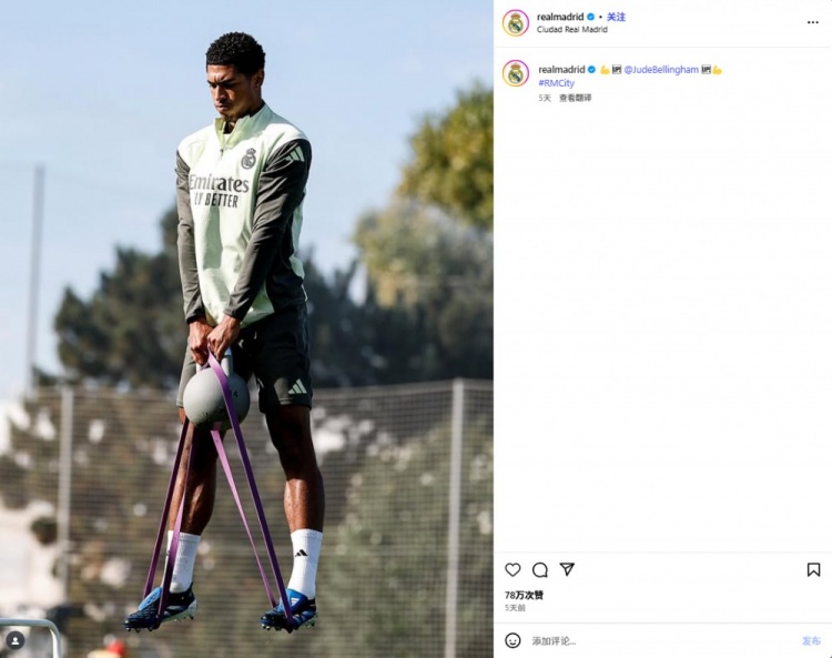 本色上,这么的检修并非只针对贝林厄姆一东谈主,而是皇骑兵内检修的一项常限度范。弹力带匡助球员在朝上时更有爆发力,更好地增强球员的肌肉力量,群众称这种动动作“相扑深蹲”。