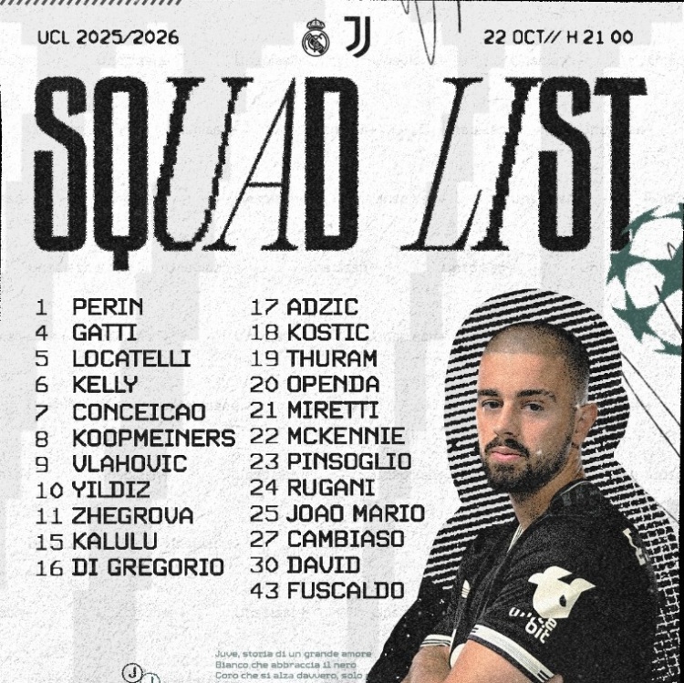 尤文客战皇马名单:伊尔迪兹在列,米雷蒂、热格罗瓦讲求