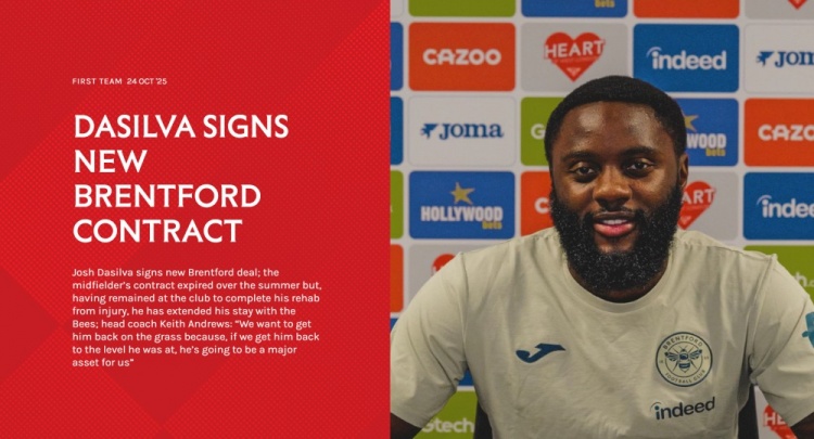 官方:布伦特福德中场达席尔瓦续约至赛季末,含延伸一年的选项