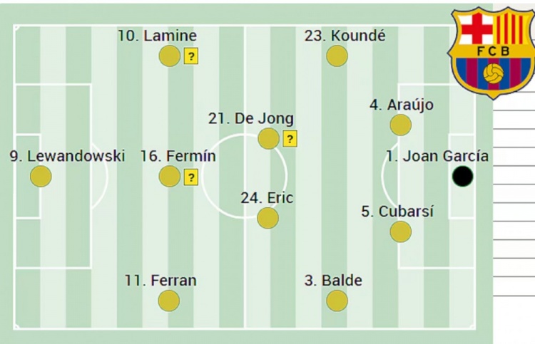 阿斯报量度巴萨欧冠首发:莱万、亚马尔、费兰三叉戟,费尔明在列