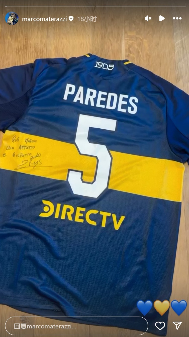 马特拉都获赠帕雷德斯的博卡后生球衣、迪巴拉的阿根廷球衣,他在支吾媒体上晒出球衣的视频,对两东谈主暗示感谢。