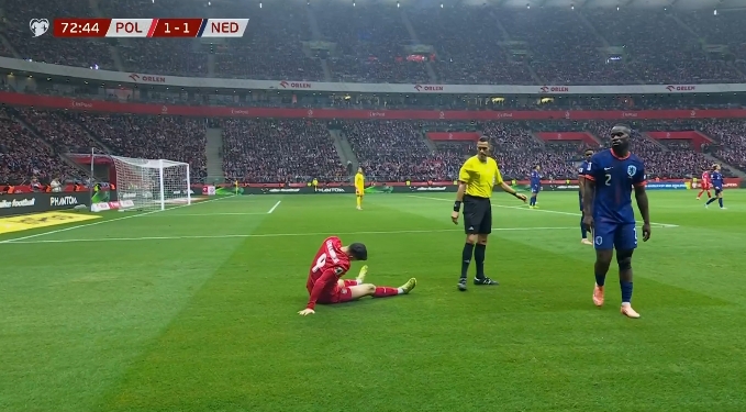 11月15日讯 波兰vs荷兰第74分钟,莱万在争抢时受伤,奏凯坐下了,但暂时莫得换东谈主。