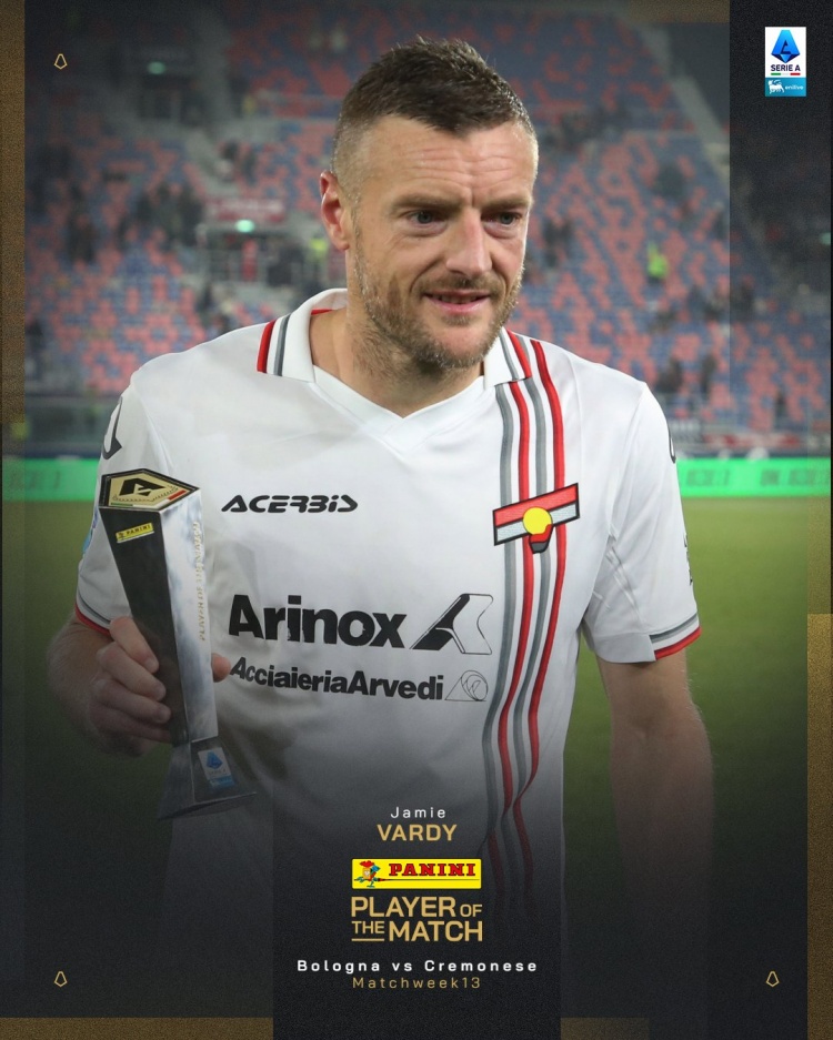 此役38岁瓦尔迪梅开二度,匡助克雷莫内塞取胜,意甲官方秘书,他当选本场比赛全场最好球员。