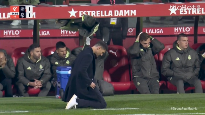 错失绝杀后,罗德里戈用球衣蒙住了头,场边的阿隆索跪地折腰。随后赫罗纳门球开出,主裁吹响了终场哨。