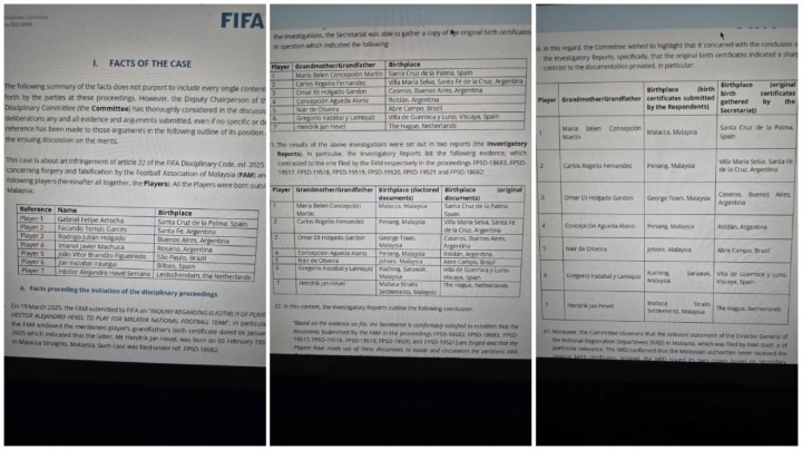 10月07日讯 国际足联公布了对马来西亚足协以及七名归化球员采取纪律处分的充分理由,确认在球员注册过程中提交的祖父母出生地存在造假篡改现象。