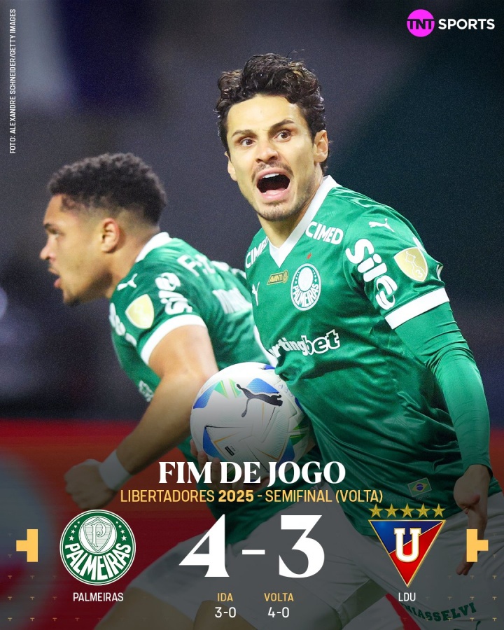 解放者杯半决赛次回合,帕尔梅拉斯4-0基多大学,两回合总比分4-3惊天逆转晋级,他们将在决赛对阵另一支巴西球队弗拉门戈。