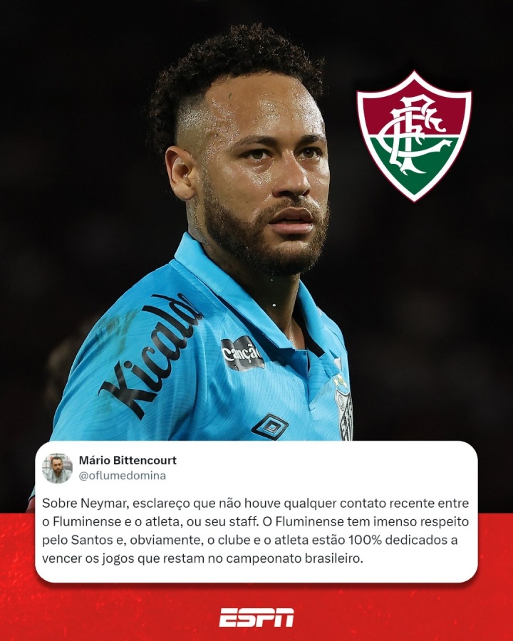 比滕考特社媒写道:“关于内马尔,我在此澄清,弗鲁米嫩塞俱乐部近期未与该球员或其团队有过任何接触。”