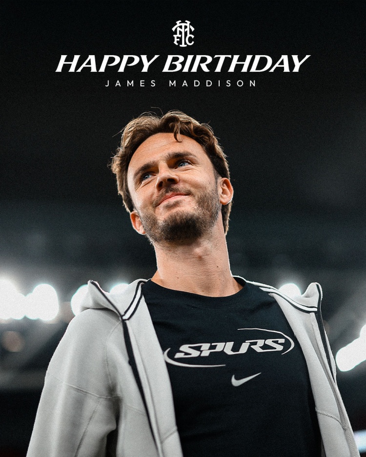 11月23日讯 今天是热刺中场麦迪逊的29岁生日,热刺官方为他送上祝福。