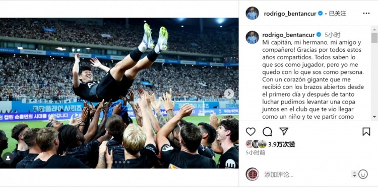 感谢你所作念的一切,伯仲,咱们在俱乐部会稀奇思念你!祝你和你的家东谈主在新征途中一切告成!但愿很快能再次重逢,神话!我稀奇爱你!”
