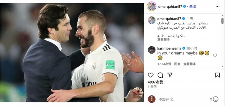 10月4日讯 记者Omar Qahtan报谈,本泽马条目吉达皆集引进索拉里手脚主帅,但遭到拒却,本泽马随后在批驳区辟谣。