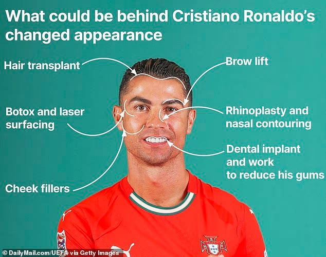 莱文博士觉得,C罗可能接收了内窥镜提眉手术,聚合肉毒杆菌和可能的激光焕肤,使他看起来“干净、整洁、龙翔虎跃”。