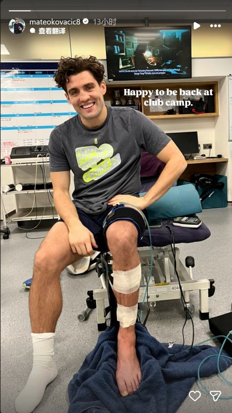 科瓦契奇照旧回到俱乐部,开启新一阶段的康复程度,他在酬酢媒体上晒出新造型,配文:“很欢欣回到俱乐部老到营。”