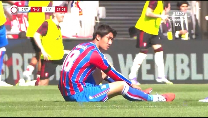 08月10日讯 社区盾杯决赛,水晶宫对阵利物浦,比赛第28分钟,镰田地面遇到伤病无法坚合手,威尔-休斯替补登场。