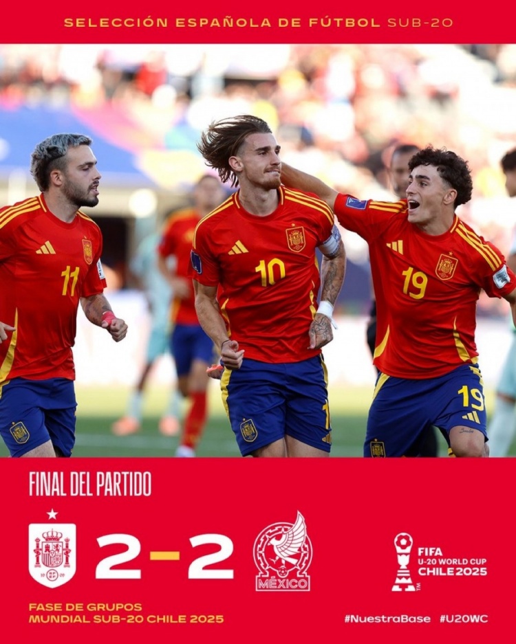 此役事后,西班牙1平1负积1分,名次世青赛C组终末一位,墨西哥则是2战齐平积2分。