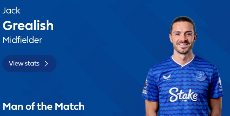 本场比赛格拉利什在93分钟打进绝杀,赛后他也当选英超官方球迷票选全场最好球员。