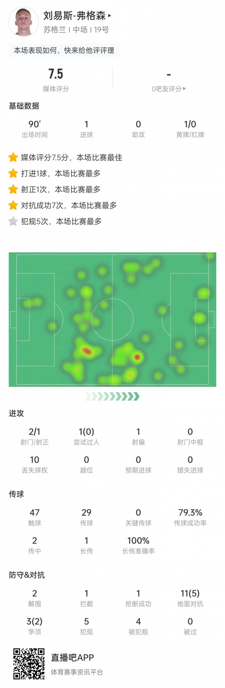 斩获进球!刘易斯-弗格森当选对阵希腊一役苏格兰队内最好球员