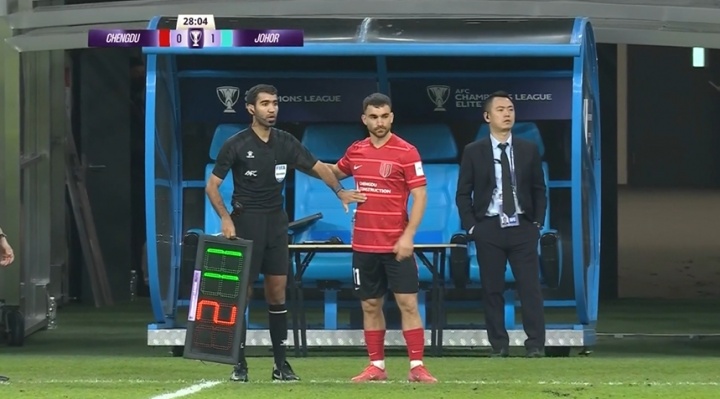 比赛第29分钟,成皆蓉城作念出换东说念主调度,胡荷韬因伤被动离场,古尔芬克尔替补登场。场上比分蓉城0-1柔佛。