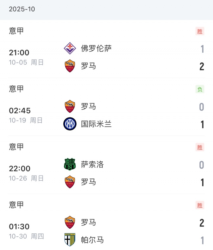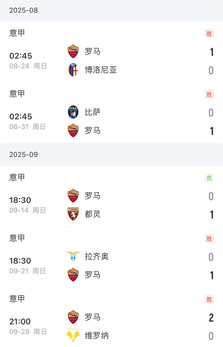 而2个负场中,罗马别离王人所以0-1的比分败给王人灵和国米。
