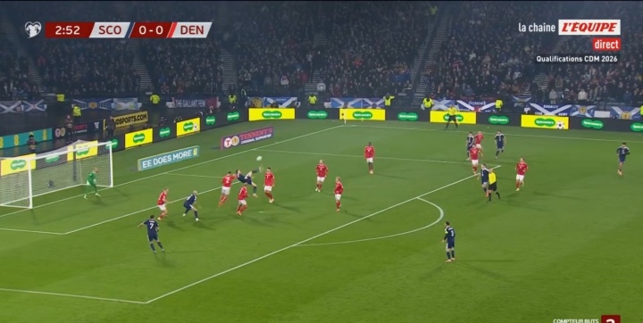 现在苏格兰1-0丹麦,以此比分苏格兰将纵贯宇宙杯!