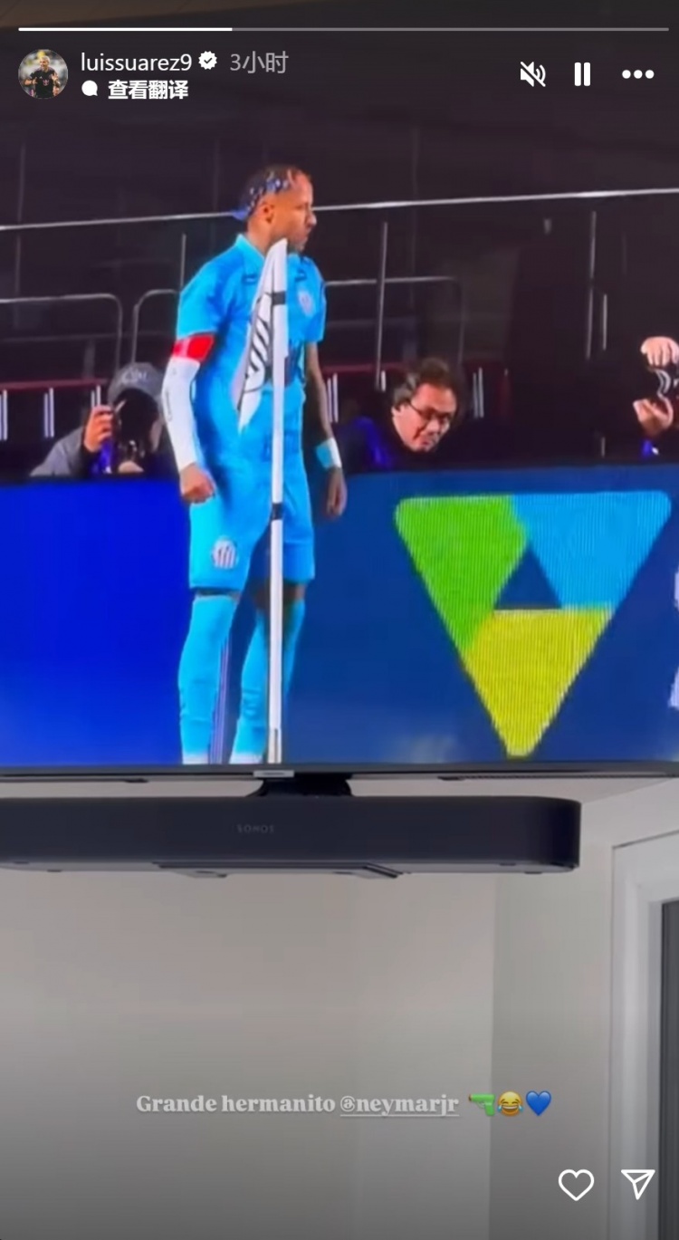 苏亚雷斯更新社媒动态,晒出内马尔庆祝进球的视频,为老队友奉上饱读吹,配文:“了不得的昆季,内马尔。”